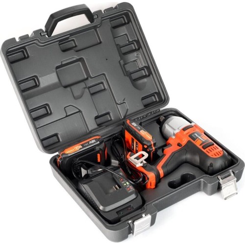 кейс, зарядное устройство, аккумуляторная батарея (2 шт.), аккумуляторный ударный гайковерт, инструкция с гарантийным талоном