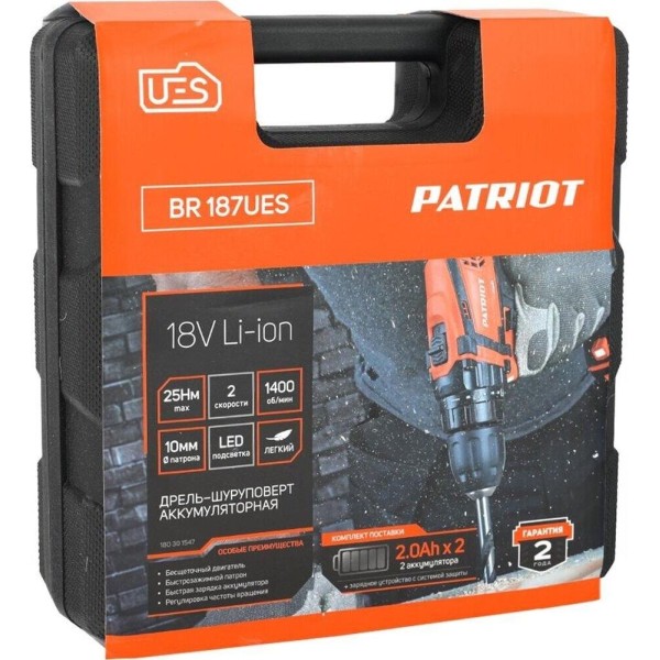 Дрель-шуруповерт PATRIOT 180301547 BR 187UES Дрель-шуруповерт аккумуляторная LI-ION