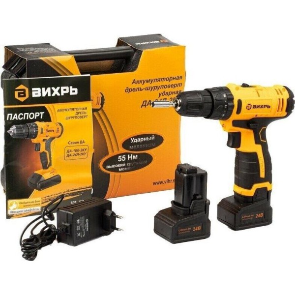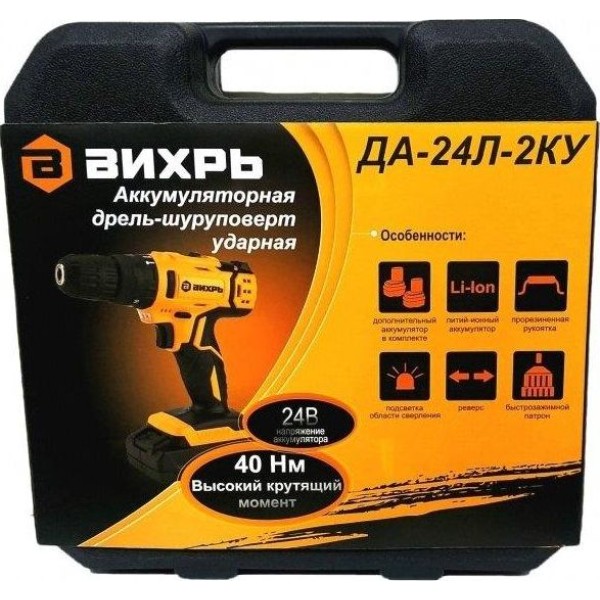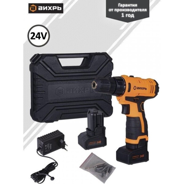 Аккумуляторная дрель-шуруповерт ВИХРЬ ДА-24Л-2КУ