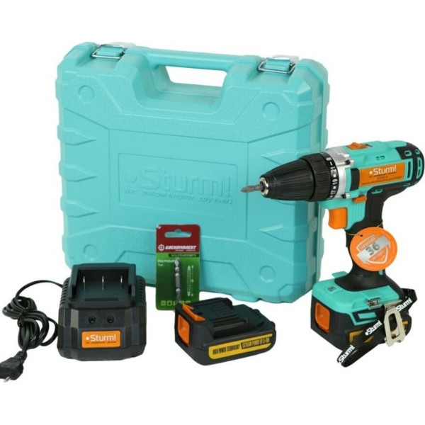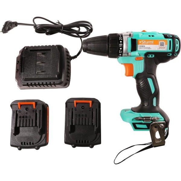 аккумулятор - 2 шт., аккумуляторная дрель, кейс, инструкция, двусторонняя бита - 2 шт., зарядное устройство