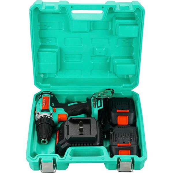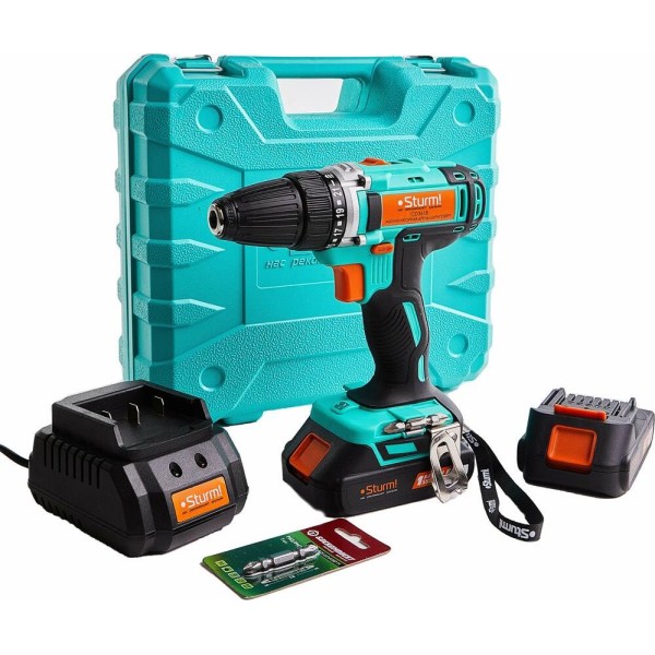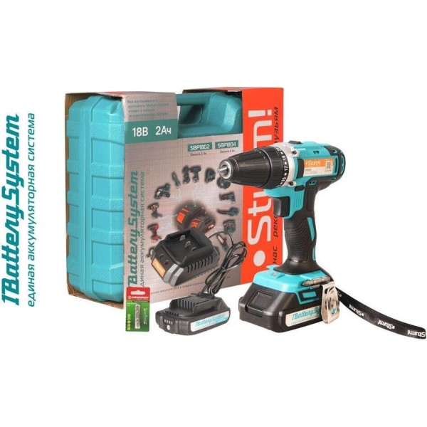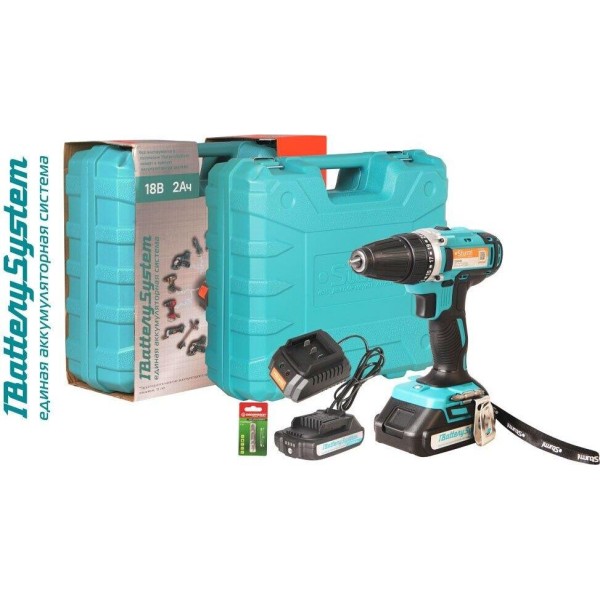 аккумуляторная батарея – 2 шт. (одна установлена в корпусе), зарядное устройство, двусторонняя бита – 2 шт., дрель, пластиковый кейс