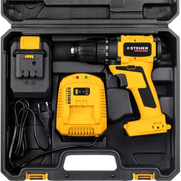 Дрель STEHER CDB-200-1 20В бесщёточная дрель-шуруповерт, 1 АКБ (2Ач), в кейсе