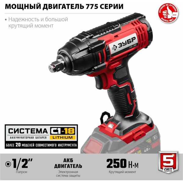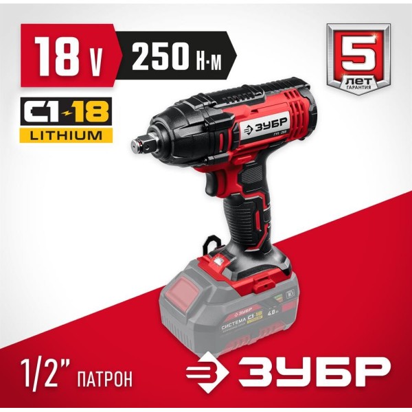 Гайковерт ЗУБР ГУЛ-255 18В, без АКБ, в коробке, гайковерт ударный