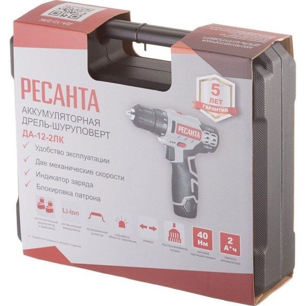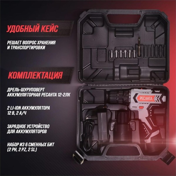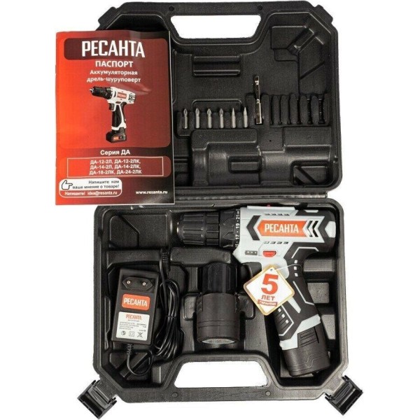 Дрель-шуруповерт аккумуляторная РЕСАНТА ДА-12-2ЛК