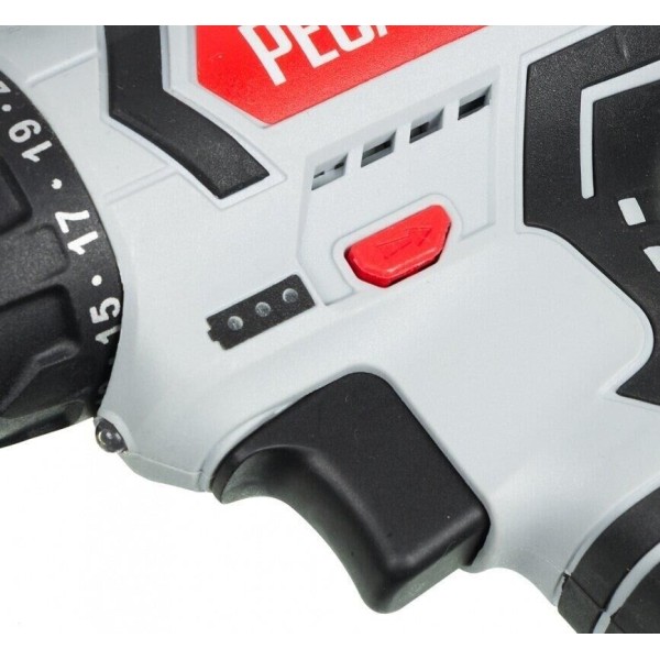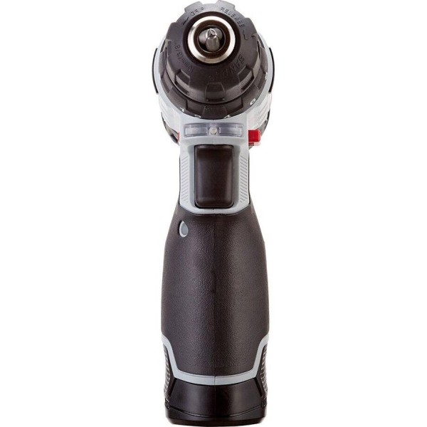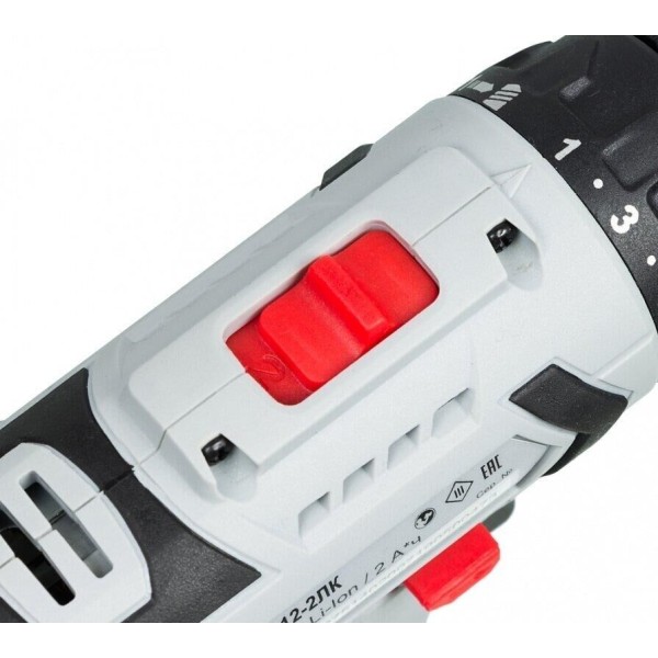 Напряжение аккумулятора: 12 В Тип аккумулятора: Li-Ion Max крутящий момент: 40 Нм Max диаметр сверления (металл): 10 мм Max диаметр сверления (дерево): 20 мм Вес: 0,96 кг Размер зажимаемой оснастки: от 0,8 до 10 мм Емкость аккумулятора: 2 А.ч Режимы работы: Сверление Тип патрона: быстрозажимной Количество скоростей: 2 Комплектация: кейс Тип двигателя: щеточный Подсветка: есть Количество аккумуляторов в комплекте: 2 Реверс: есть Число оборотов на холостом ходу (первая скорость): 400 об/мин Число оборотов на холостом ходу (вторая скорость): 1400 об/мин Блокировка шпинделя: есть
