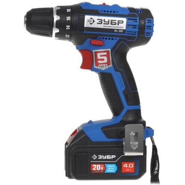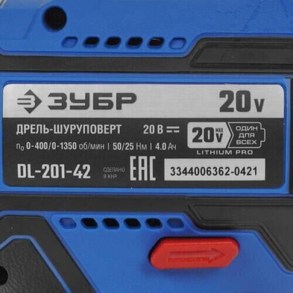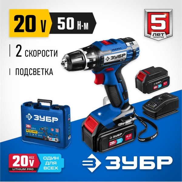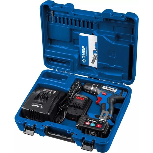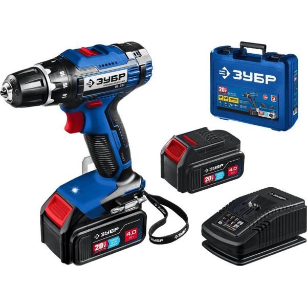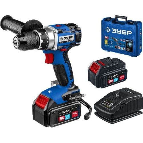 Дрель-шуруповерт ЗУБР DB-201-42 20В бесщеточная дрель-шуруповерт, 2 АКБ (4Ач), в кейсе, Профессионал