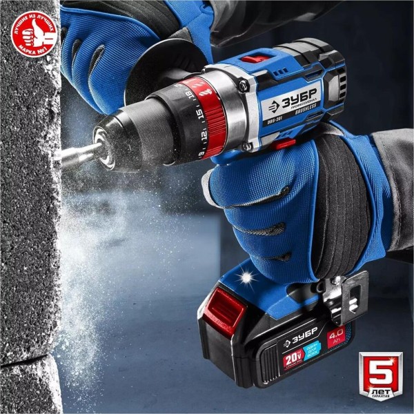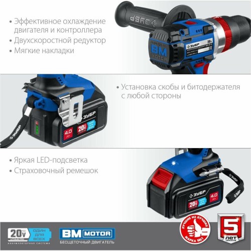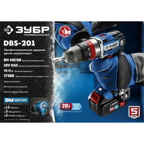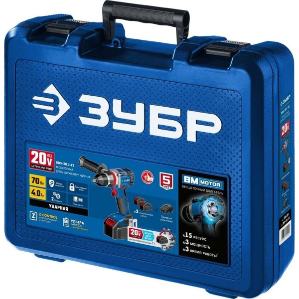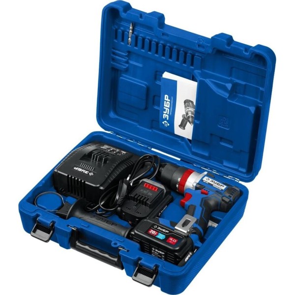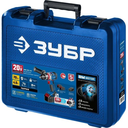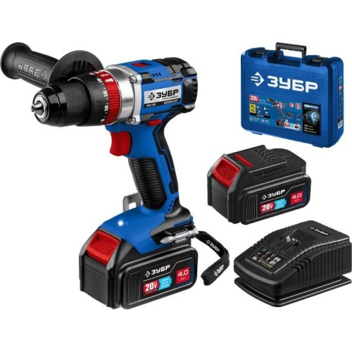 Дрель-шуруповерт ЗУБР DBS-201-42 20В бесщеточная ударная дрель-шуруповерт, 2 АКБ (4Ач), в кейсе, Профессионал