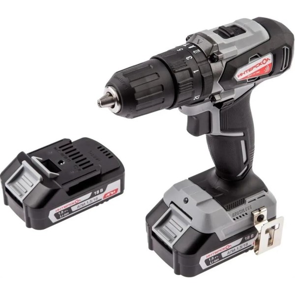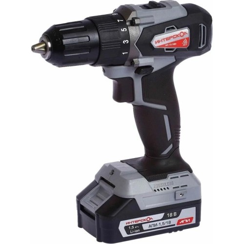 Дрель-шуруповерт ИНТЕРСКОЛ ДА-13/18ВК бесщеточная аккум. дрель-шуруп. Li-ion АПИ (кейс, 2 аккум. 2Ач, ЗУ)