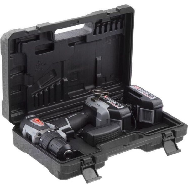 дрель-шуруповерт; 2 аккумуляторные батареи; зарядное устройство; кейс