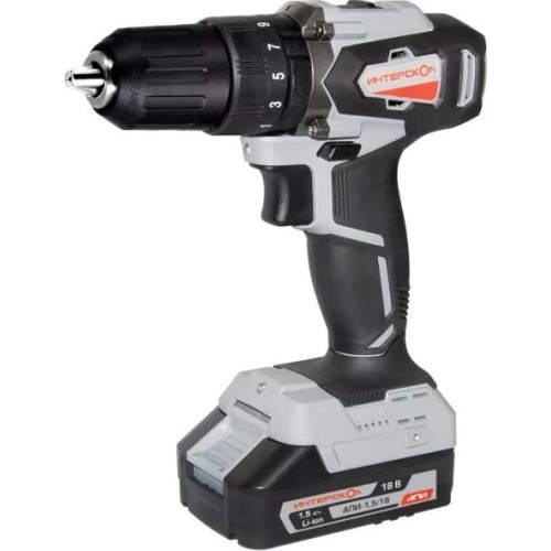 Дрель ИНТЕРСКОЛ ДАУ-13/18ВК бесщеточная удар. аккум. дрель-шуруп. Li-ion АПИ (кейс, 2 аккум. 1,5Ач, ЗУ) 573.1.2.70