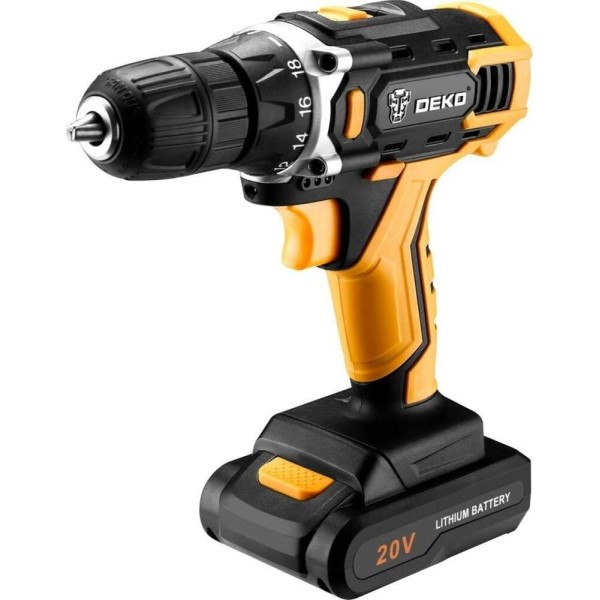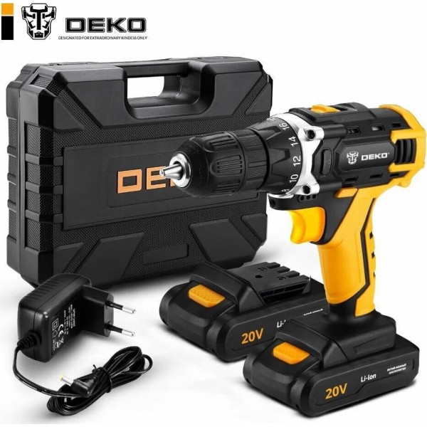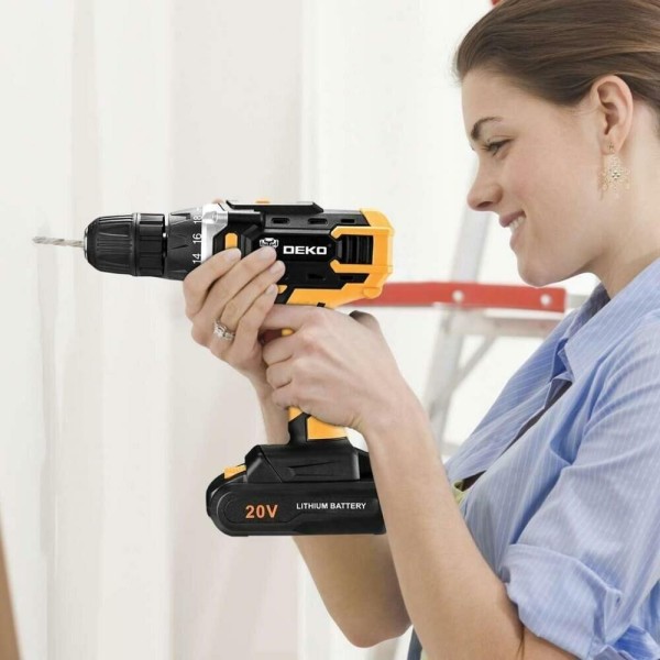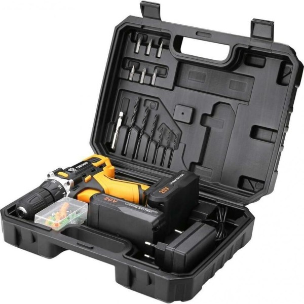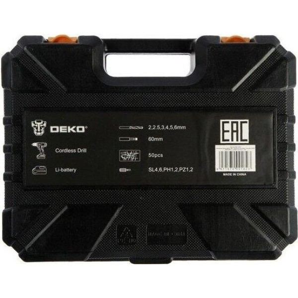 Дрель-шуруповерт DEKO DKCD20FU-Li в кейсе + набор 63 инструмента для дома, 20В, 2х2.0Ач 063-4093