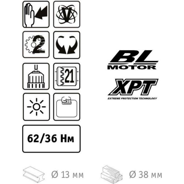 блокировка кнопки включения, лампа точечной подсветки, фиксация шпинделя, тормоз двигателя, Рукоятки с резиновым покрытием