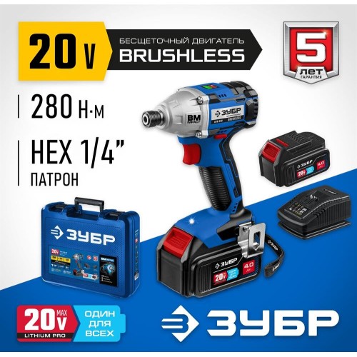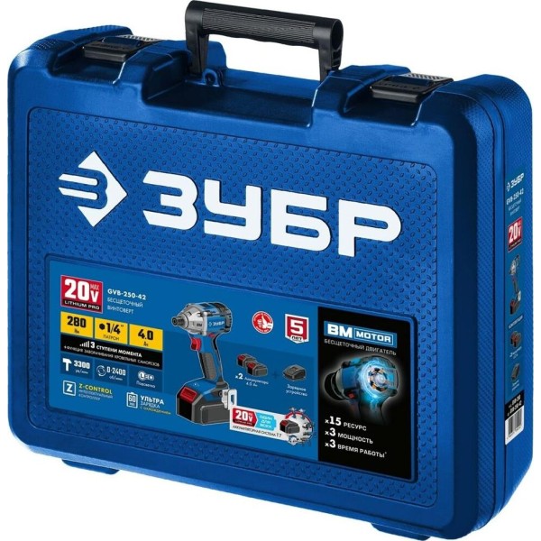 ЗУБР Винтоверт GVB-250-42 аккум. патрон:держатель бит 1/4" (кейс в комплекте)