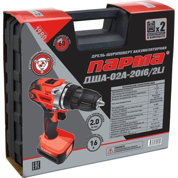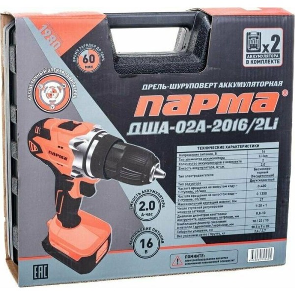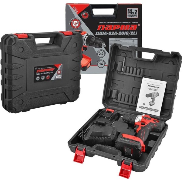ПАРМА Дрель-шуруповерт ДША-02А-2016/2Li аккум. патрон:быстрозажимной (кейс в комплекте) (02.021.00010)