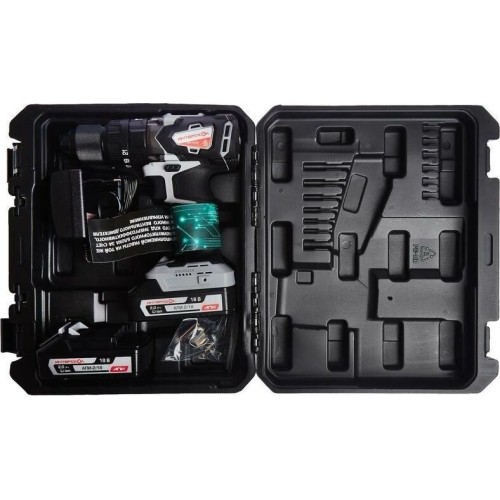 аккумуляторная ударная дрель-шуруповерт: 1 шт; аккумулятор 2 А*ч: 2 шт; зарядное устройство: 1 шт. кейс: 1 шт