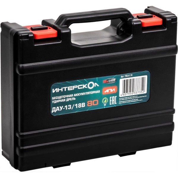 INTERSKOL Аккумуляторная бесщеточная дрель-шуруповерт ИНТЕРСКОЛ ДАУ-13/18В 50 (кейс, 2 аккум. 2Ач, ЗУ)