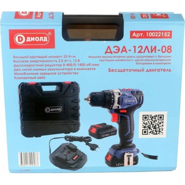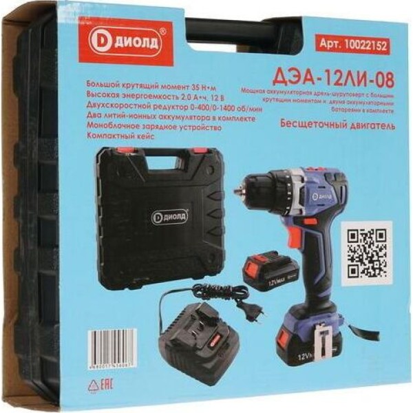 ДИОЛД Дрель-шуруповерт ДЭА-12 ЛИ-08, 2Ач, с двумя аккумуляторами [10022152]