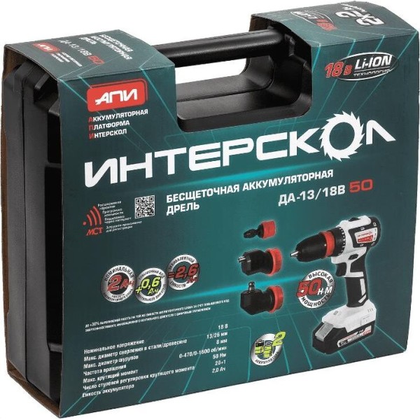 ИНТЕРСКОЛ Дрель-шуруповерт ДА-13/18В 50, 2Ач, с двумя аккумуляторами [776.2.2.79]