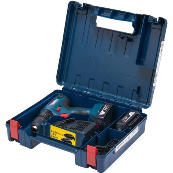 2 аккумулятора 2 А·ч, зарядное устройство GAL 18V-20, кейс, дрель-шуруповерт
