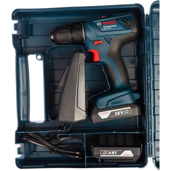 BOSCH Дрель-шуруповерт GSR 180 LI, 1.5Ач, с двумя аккумуляторами [06019f8109]