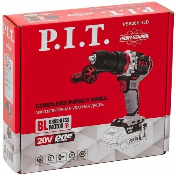 P.I.T. Ударная дрель-шуруповерт PSB20H-13D/3, 4Ач, с одним аккумулятором