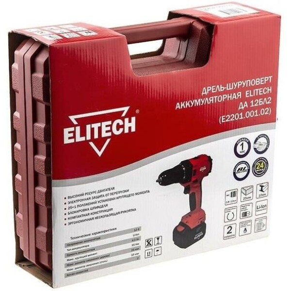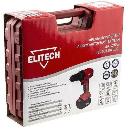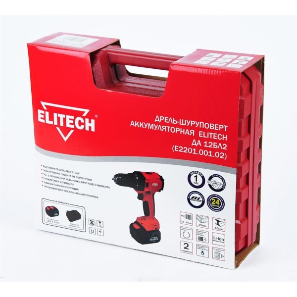 ELITECH Дрель-шуруповерт ДА 12БЛ2 (Е2201.001.02), 4Ач, с двумя аккумуляторами [191606]