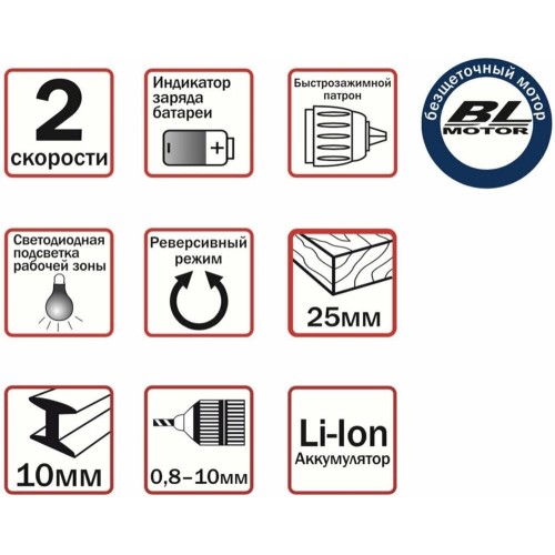 Кейс в комплекте, Тормоз двигателя, фиксация шпинделя, антивибрационная система, Рукоятки с резиновым покрытием, Индикатор заряда аккумулятора