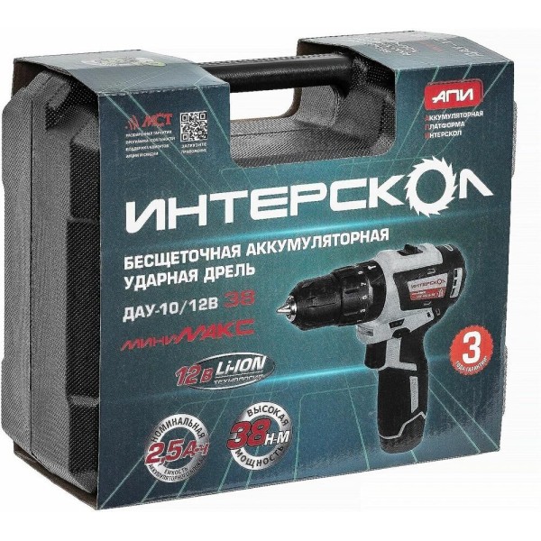 ИНТЕРСКОЛ Ударная дрель-шуруповерт ДАУ-10/12В, 2.5Ач, с двумя аккумуляторами [767.2.2.45]