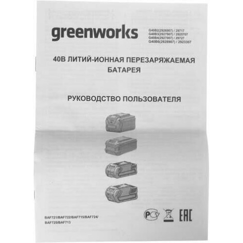 GREENWORKS Батарея аккумуляторная G40B4, 40В, 4Ач, Li-Ion [2927007]