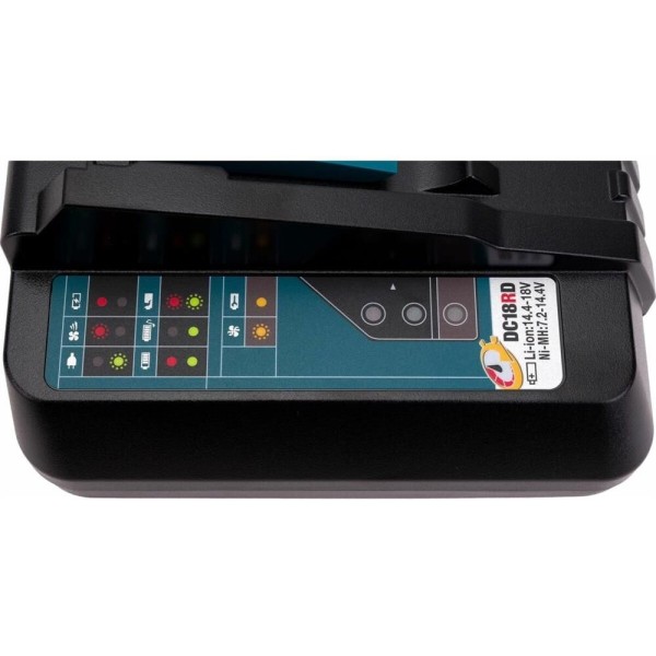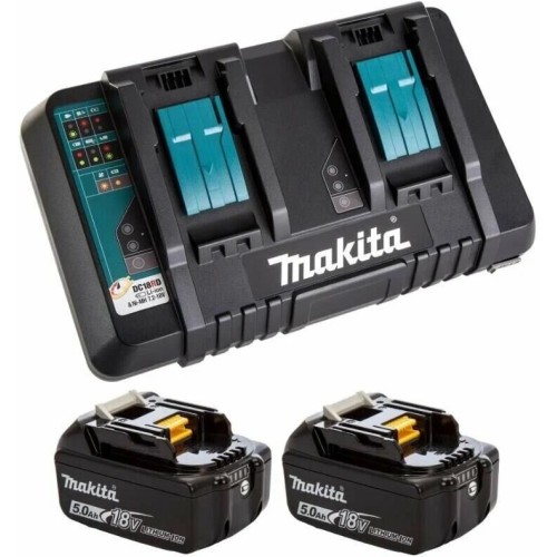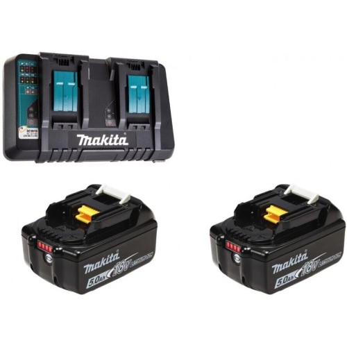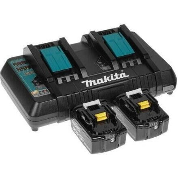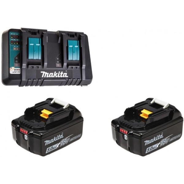 в комплекте: зарядное устройство DC18RD - 1шт, аккумулятор BL1850B - 2шт; время заряда 45 минут