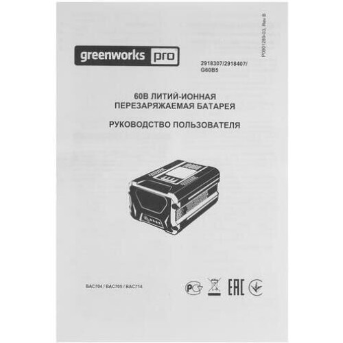 Используется с техникой GreenWorks серии 60V.