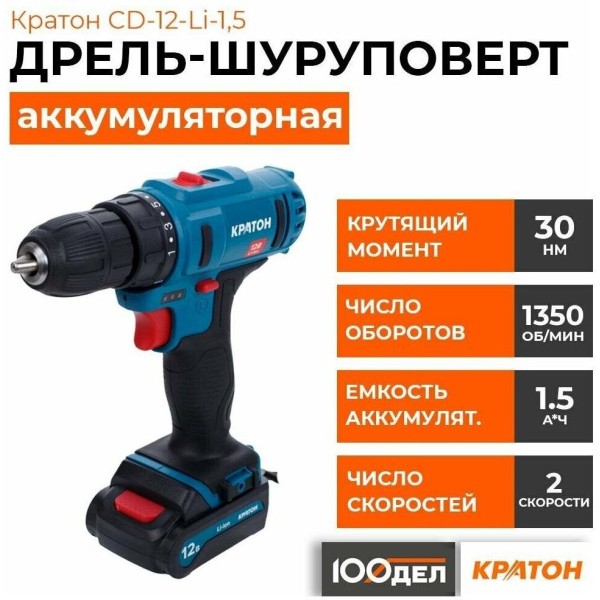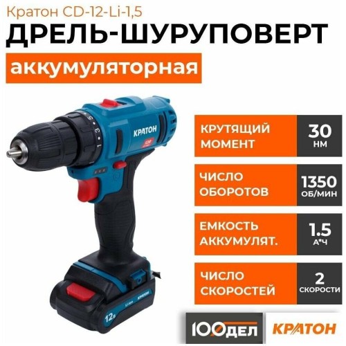 КРАТОН Дрель-шуруповерт CD-12-Li-1,5 аккум. патрон:быстрозажимной (кейс в комплекте) (3 11 01 054)