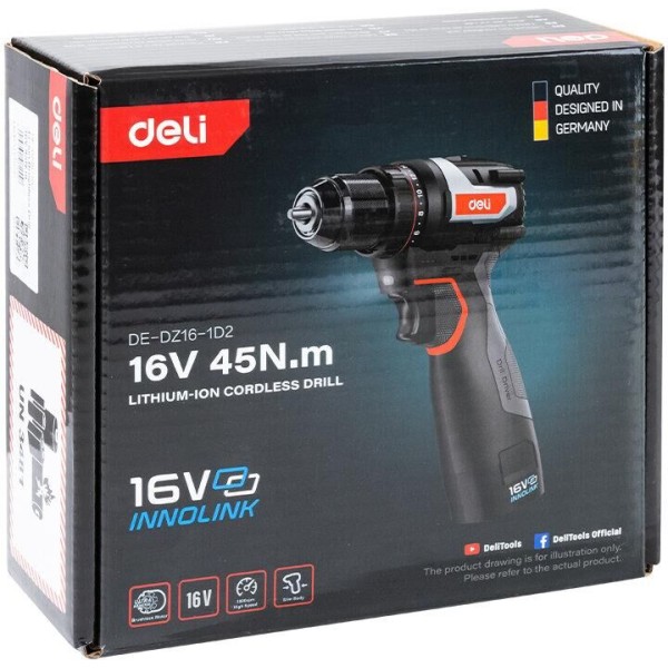 Дрель-шуруповерт аккумуляторная Deli Дрель-шуруповерт аккумуляторная Deli DC120 (2 АКБ*2Ач+ЗУ, 20В, 45Нм, сумка)