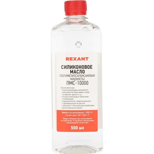 Полиметилсилоксановая жидкость ПМС-10000 (ГОСТ 13032-77) REXANT – бесцветная, прозрачная, химически инертная и коррозионностойкая силиконовая жидкость без запаха.