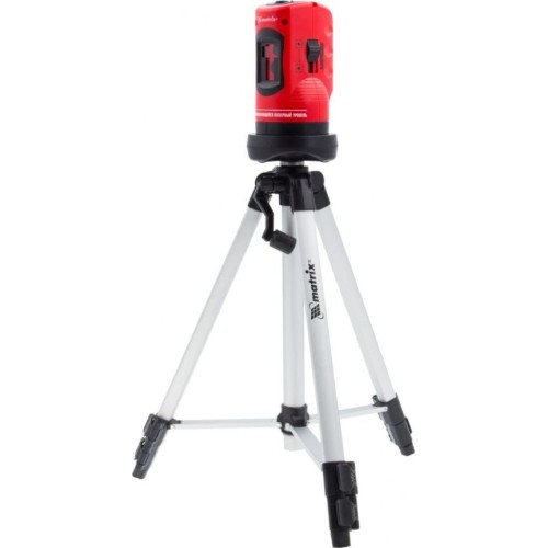 Уровень лазерный торговой марки Matrix это прибор, позволяющий строить горизонтальные и вертикальные плоскости на объекте, при этом отображаются световые линии (Highlight) по отношению друг к другу под прямым углом. Дальность проекции лазерной линии луча составляет 10 метров. Каждый источник лазерного луча снабжен независимым выключателем. Питание лазерного уровня осуществляется от двух аккумуляторных батарей типа АА. Корпус уровня изготовлен из ударопрочного пластика, нижняя часть которого оснащена закладным элементом, предназначенным для фиксации лазерного уровня на штативе. Алюминиевый штатив с выдвижными ножками позволяет зафиксировать уровень на высоте до 1260 мм. К уровню прилагается прочная синтетическая сумка, подходящая для хранения и транспортировки инструмента.