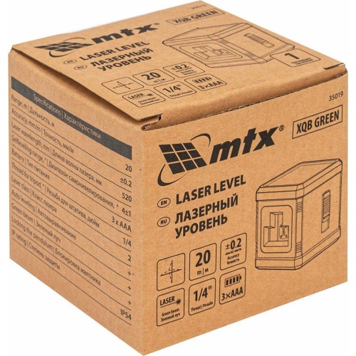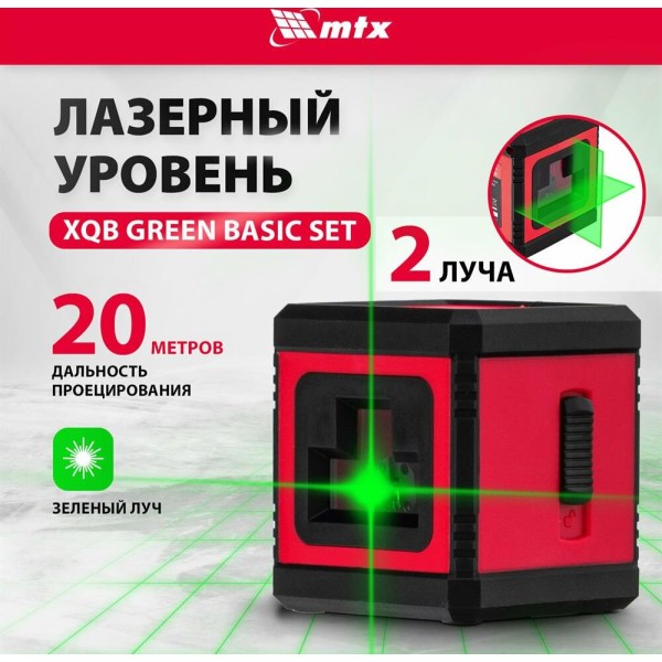 MTX Лазерный уровень XQB GREEN Basic SET, 20 м, зеленый луч, батарейки, резьба 1/4" 35019