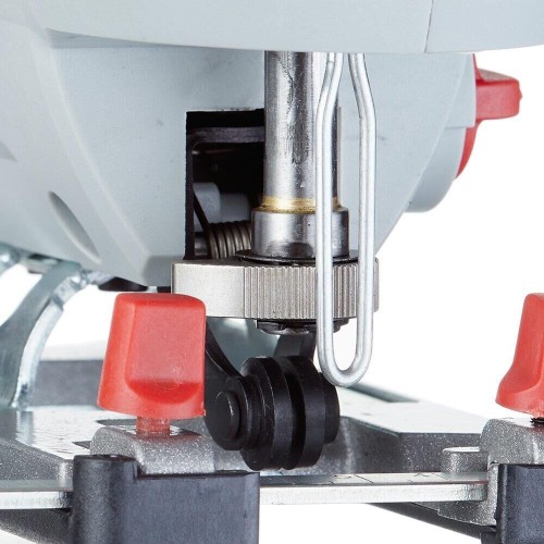 быстрозажимное крепление пилки, возможность подключения пылесоса, лазерный маркер, обрезиненная рукоятка, подсветка, сдув опилок, подключение пылесоса