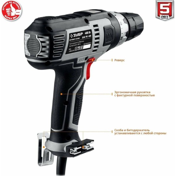 Дрель-шуруповерт ЗУБР ДШ-М1-400 дрель-шуруповерт сетевая