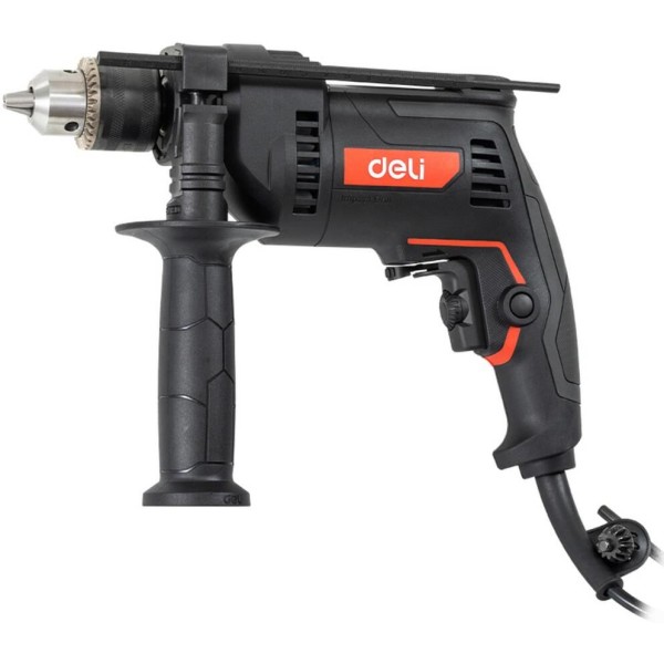 Дрель DE-CZ13-1E Дополнительная рукоятка Ограничитель глубины сверления Ключ Запасные угольные щётки – 2шт Инструкция/гарантийный талон Коробка