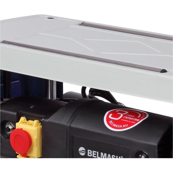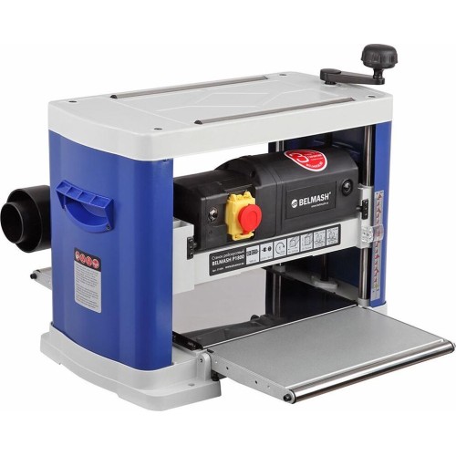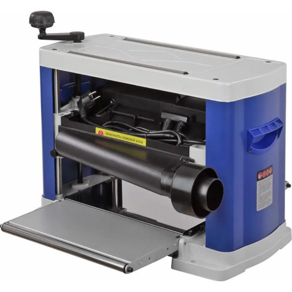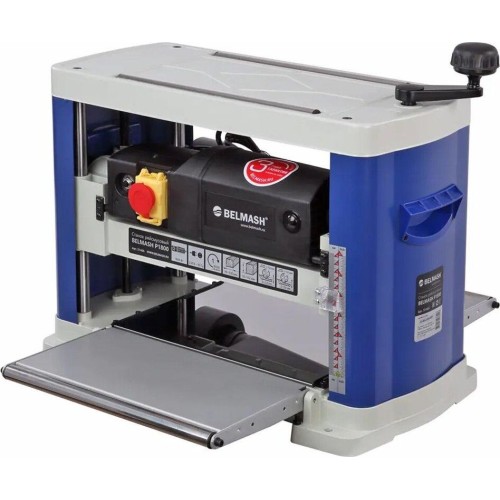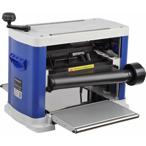 Станок рейсмусовый. Мощность 1800 Вт Напряжение питающей сети 230 В Частота тока 50 Гц Тип электродвигателя Коллекторный Частота вращения ножевого вала 8500 об/мин Количество ножей на валу 2 шт. Размер ножей (Д х Ш х В) 333 х 1,5 х 12 мм Максимальная ширина рейсмусуемой заготовки 330 мм Максимальная высота рейсмусуемой заготовки 152 мм Максимальная глубина строгания 2,4 мм Скорость автоподачи 1 7 м/мин Материал рабочего стола Сталь Размер рабочего стола (Д х Ш х Т) 330 х 240 мм Диаметр патрубка пыле/стружкоудаления 53/(63/102) мм Материал дополнительных столов Сталь Минимальная длина обрабатываемой заготовки 240 мм Минимальная ширина обрабатываемой заготовки 19 мм Минимальная толщина заготовки 5,2 мм Габаритный размер (Д х Ш х В) 680 х 640 х 480 мм