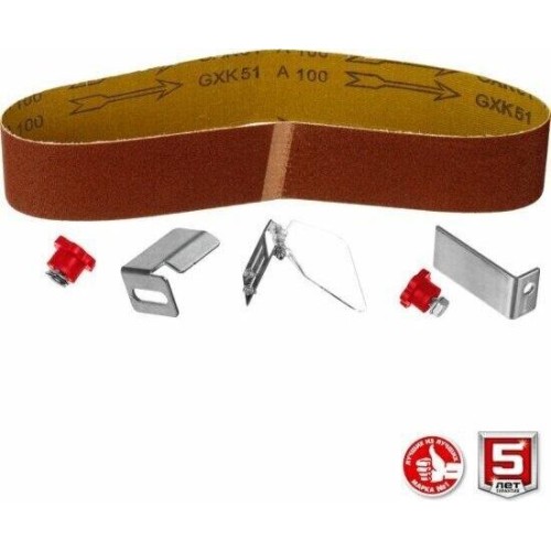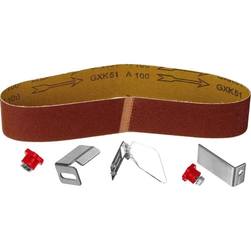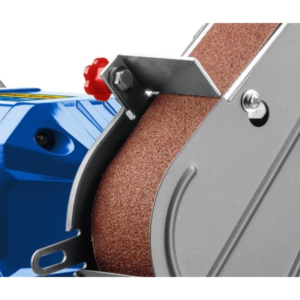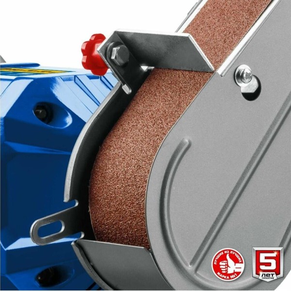 абразивный заточной круг (установлен), 30 мин; напряжение питания: ~230/50 В/Гц; масса изделия: 8,4 кг; комплектация: станок заточной, длина и ширина шлифовальной ленты: 686 х 50 мм, руководство по эксплуатации, зернистость: 60/80/100; режим работы: S2, упор, защитный экран, лента шлифовальная (установлена)