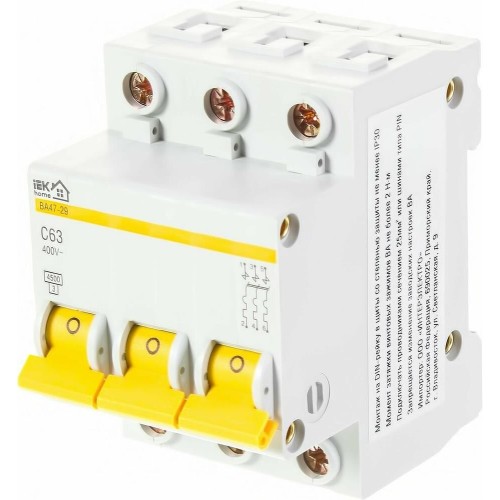 Выключатель автоматический, трехполюсный ВА 47-29, 3P 63А (С) 4,5kA IEK (MVA20-3-063-C) - 1 шт.