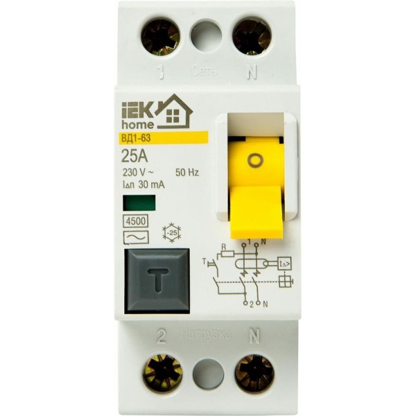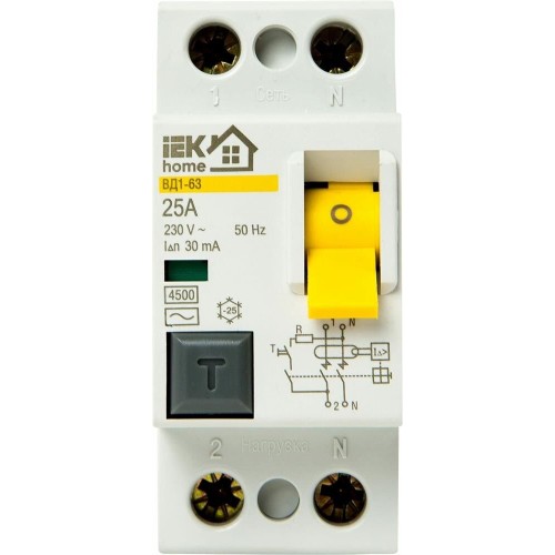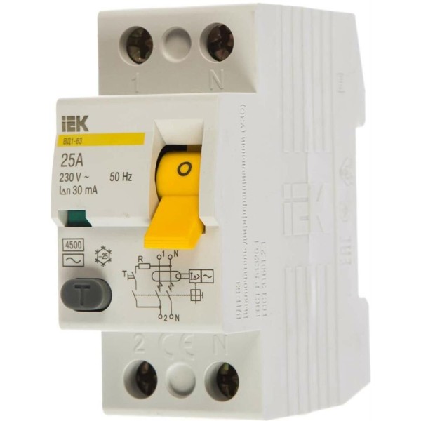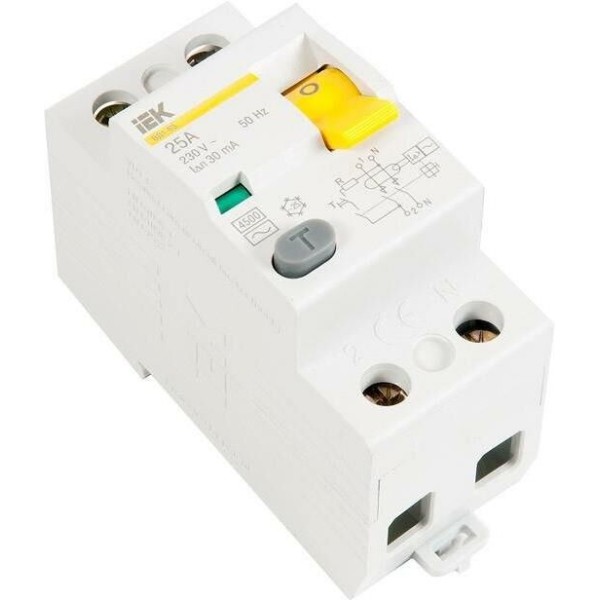 IEK Выключатель дифф.тока УЗО ВД1-63 (MDV10-2-025-030) 25A 30мА AC 2П 230В 2мод белый (упак.:1шт)