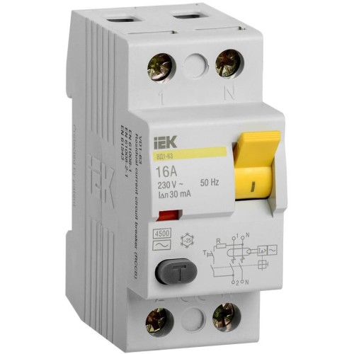 IEK Выключатель дифф.тока УЗО MDV10-2-016-030 ВД1-63 16A 30мА AC 2П 230В 2мод белый (упак.:1шт)