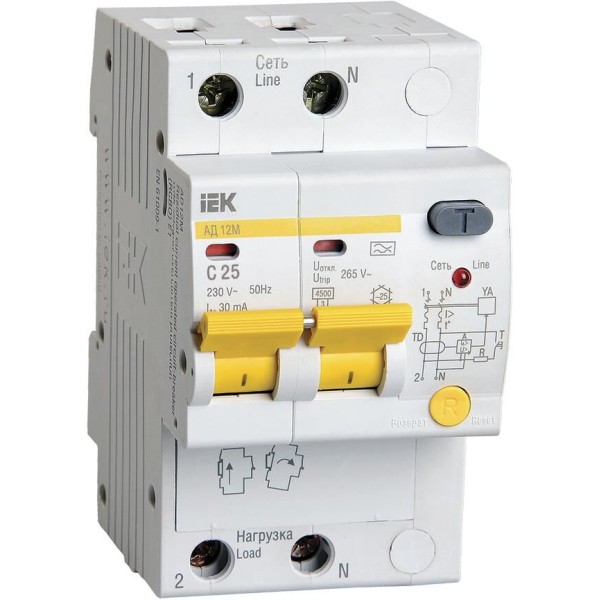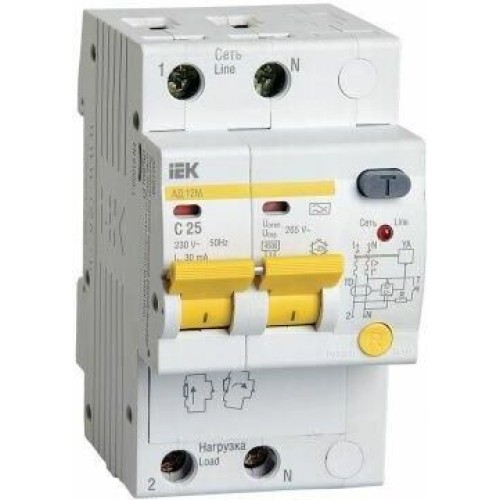 IEK Выключатель автом. дифф. тока MAD12-2-025-C-030 АД12М 25A тип C 4.5kA 30мА A 2П 230В 3мод белый (упак.:1шт)
