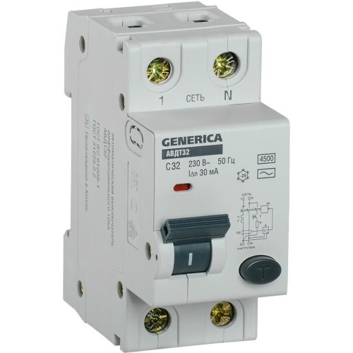 IEK Выключатель автом. дифф. тока MAD25-5-032-C-30 АВДТ 32 Generica 32A тип C 6kA 30мА AC 2П 230В 2мод серый (упак.:1шт)