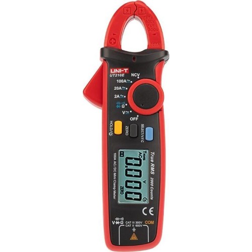 Чрезвычайно удачная модель токовых клещей компактной серии 210E с функцией True RMS. ; ; Высокая чувствительность при измерении тока: ~10 мА; Разрядность шкалы дисплея: 2000 отсчетов; Метод измерений: True RMS; Автоматический выбор пределов измерений; Переменный ток: 1 мА…100 А, погрешность ±2,5% ±5 единиц счета; Постоянный ток: 1 мА…100 А, погрешность ±2,0% ±3 единицы счета; Переменное напряжение: 1 мВ…600 В, базовая погрешность ±1,0% ±3 единицы счета; Постоянное напряжение: 0,1 мВ…600 В, базовая погрешность ±0,7% ±3 единицы счета; Сопротивление: 0,1 Ом…20 МОм, базовая погрешность ±1,0% ±2 единицы счета; Емкость: 1 пФ...20 000 мкФ, базовая погрешность ±4% ±5 единиц счета; Звуковая прозвонка: сигнал при сопротивлении менее 10 Ом; Бесконтактный тест наличия напряжения (NCV): звук и индикация; Входное сопротивление: ~10 МОм; Тест диодов; Диаметр раскрыва клещей: 17 мм; Автоотключение питания ~ 15 минут отсутствия активности; Фиксация показаний; Функция установки нуля ; Подсветка дисплея; Максимально допустимое напряжение: 600 В; И