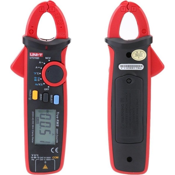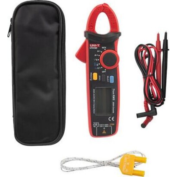 Чрезвычайно удачная модель токовых клещей компактной серии 210D с функцией True RMS.; ; Разрядность шкалы дисплея: 2000 отсчетов; Метод измерений: True RMS; Автоматический выбор пределов измерений; Переменный ток: 0.01 А…200 А, погрешность ±2,5% ±8 единиц счета; Постоянный ток: 0.01 А…200 А, погрешность ±2,0% ±3 единицы счета; Переменное напряжение: 1 мВ…600 В, базовая погрешность ±1,0% ±3 единицы счета; Постоянное напряжение: 0,1 мВ…600 В, базовая погрешность ±0,7% ±3 единицы счета; Сопротивление: 0,1 Ом…20 МОм, базовая погрешность ±1,0% ±2 единицы счета; Частота: 0,001 Гц...60 КГц погрешность ±0,1% ±4 единицы счета; Емкость: 1 пФ...20 000 мкФ, базовая погрешность ±4% ±5 единиц счета; Температура: -40...+1000 °С базовая погрешность ±1% ±3 единицы счета; Звуковая прозвонка: сигнал при сопротивлении менее 10 Ом; Бесконтактный тест наличия напряжения (NCV): звук и индикация; Входное сопротивление: ~10 МОм; Тест диодов; Диаметр раскрыва клещей: 17 мм; Автоотключение питания ~ 15 минут отсутствия активности; Фиксация показаний; Фу