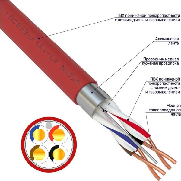 Кабель КПСВЭВ нг(А)-LS 2x2x0,50 мм? REXANT применяется для групповой прокладки в системах пожарной сигнализации, контроля доступа, а также для других систем управления, контроля и связи. КПСВЭВ нг(А)-LS эксплуатируется внутри и вне помещений, при условии защиты от прямого воздействия солнечного излучения и атмосферных осадков.
