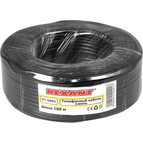 REXANT Кабель телефонный ШТЛП 2 жилы Cu, черный, 100м